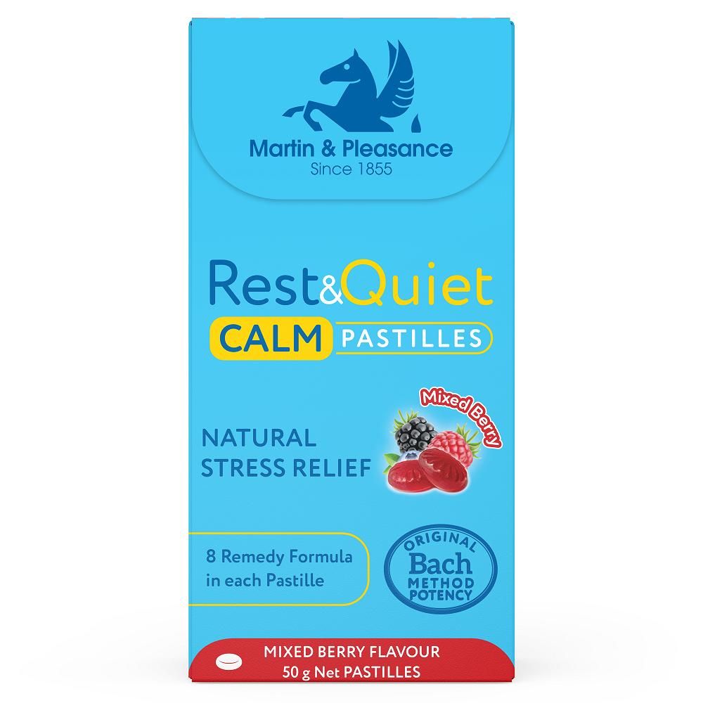 Rest&Quiet Calm Pastilles contains 4 drops of the 8 remedy Calm formula in each pastille. Made with Dr Bach’s original formulation (Cherry Plum, Clematis, Impatiens, Rock Rose & Star of Bethlehem) with an additional 3 remedies (Aspen, Mimulus & White Chestnut) to give the emotional support to overcome our daily stressors that we now face in our ever-changing world. Your moment of calm.
