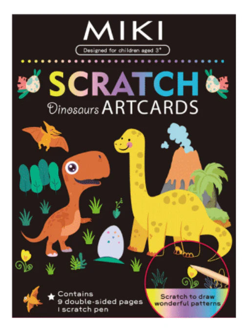 Dinosaur scratch design pages = 9, colouring page on opposite side & bamboo scratch stick.
