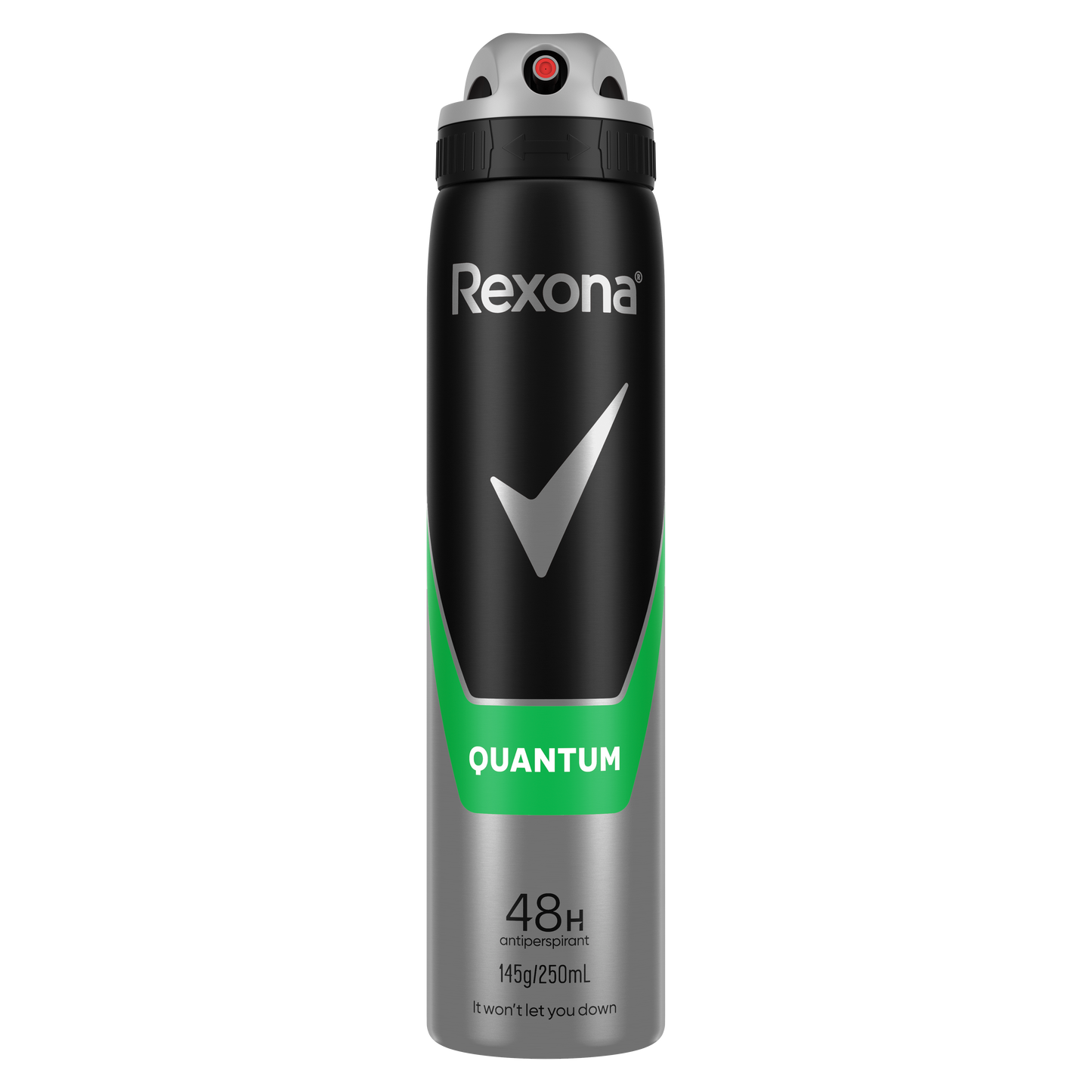 Stay energised with Rexona Men Quantum Dry Antiperspirant Deodorant. It helps defend against sweat for up to 48 hours with an invigorating scent.